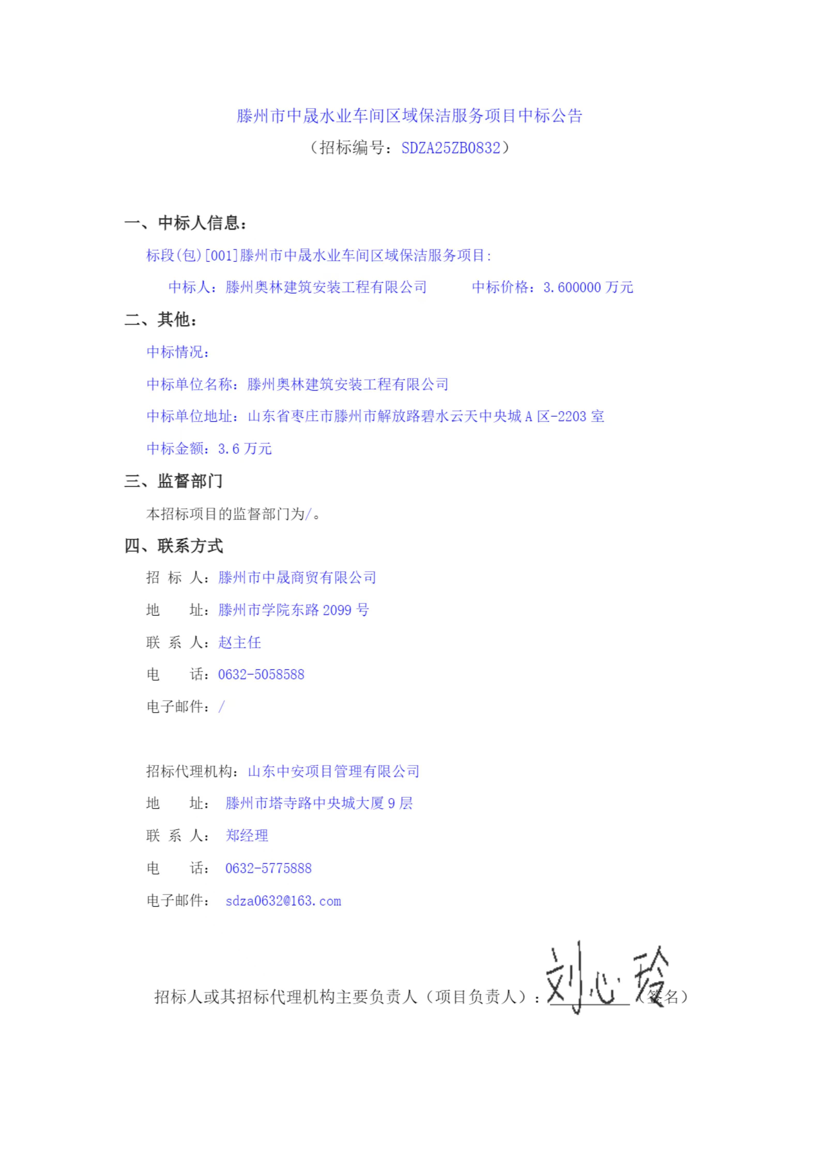 【中晟公司】滕州市中晟水业车间区域保洁服务项目中标公告 日期:2025-08-22 点击: 最新推荐 【中润公司】滕州市中润供水有限公司香舍里花园四期闸阀及双偏心法兰蝶阀、球墨铸铁管件、电磁水表采购项目三标段(二次)废标公告 2025-09-11 人气:7 【中润公司】滕州市城乡供水水质提升项目管线下穿枣木高速(S83)、321省道及东木路(10K+472、18K+614)涉路工程咨询服务采购项目谈判公告 2025-09-08 人气:8 【汇通公司】水泥钢边井盖、雨水箅采购项目(二次)竞争性磋商公告 2025-09-08 人气:4 【汇通公司】水泥钢边井盖、雨水箅采购项目流标公告 2025-09-08 人气:2 【水发公司】滕州市水务发展有限公司安全技术咨询服务项目竞争性磋商公告 2025-09-08 人气:10 【国润公司】滕州市南四湖湖水东调工程--采购标招标公告 2025-09-08 人气:5 【国润公司】滕州市南四湖湖水东调工程--监理标,检测标,施工标,其他标招标公告 2025-09-08 人气:5 【中润公司】滕州市城乡供水一体化安全巩固提升工程(一期)监理标、质量检测标、设计施工总承包(EPC)招标公告 2025-09-05 人气:11 【中润公司】滕州市中润供水有限公司第一净水厂厂区标准化提升改造物料制作安装工程采购项目询价公告 2025-09-05 人气:5 【中润公司】滕州市中润供水有限公司西办公楼配电改造工程采购项目询价公告 2025-09-05 人气:3