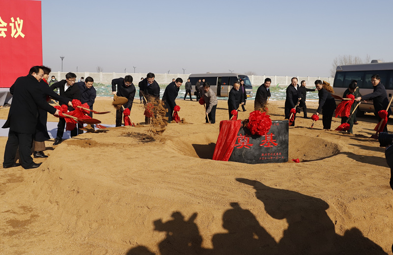 会后,主席台领导移步奠基区,共同挥动金锹为奠基碑培土,标志着东沙河水厂正式开工建设。