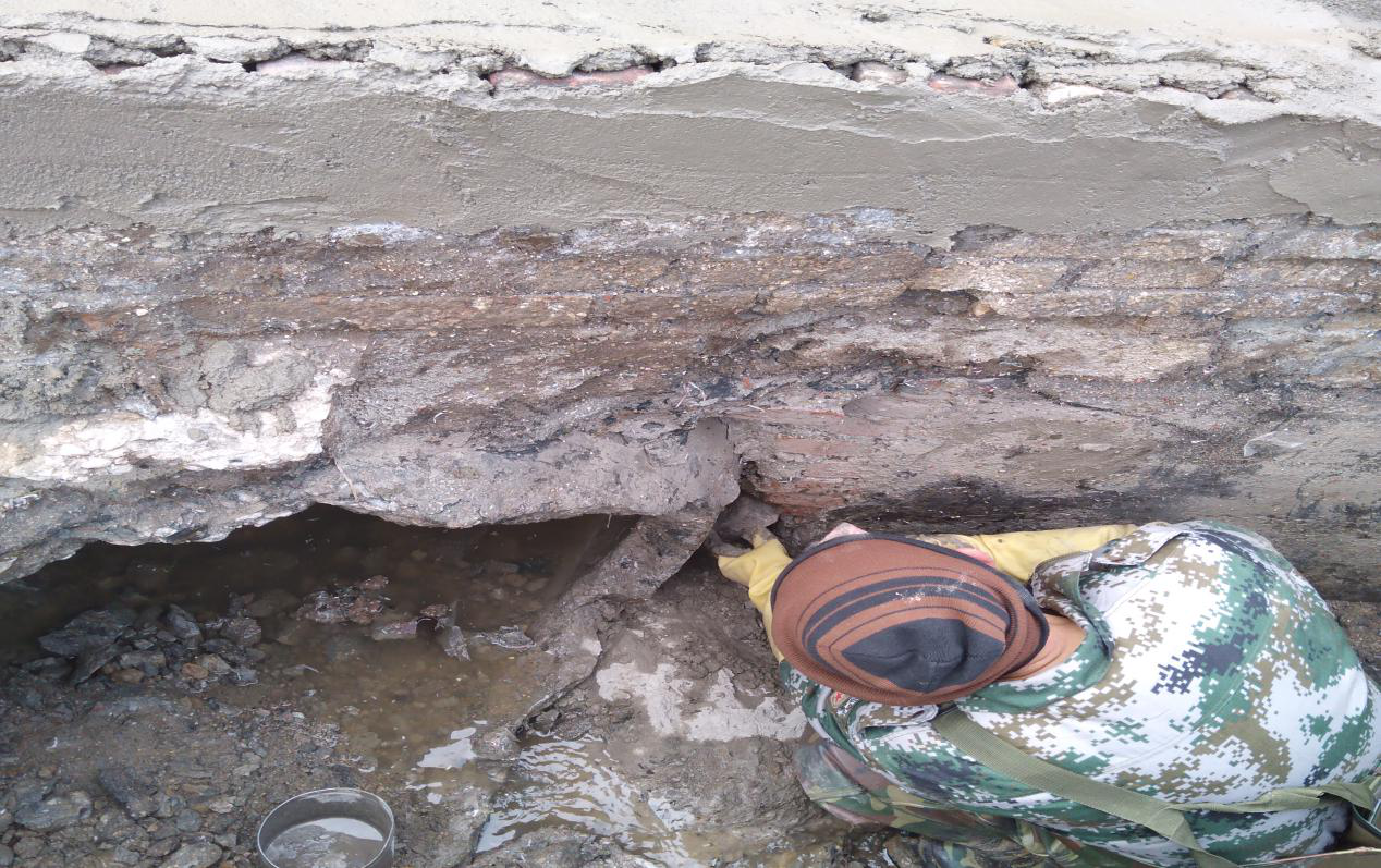 经过探挖,发现暗井与出水口连接处老化,且在污水的长期浸泡下,腐蚀破裂,污水溢出,浸透路基,形成唧泥,造成路面下陷。确定原因后,施工人员立即对污水外溢路面进行破除开挖,并对外溢污水口进行封堵。抢修人员不畏严寒,连夜加班抢修,经过连续奋战,完成正常通水,保障排水管网的安全运行。