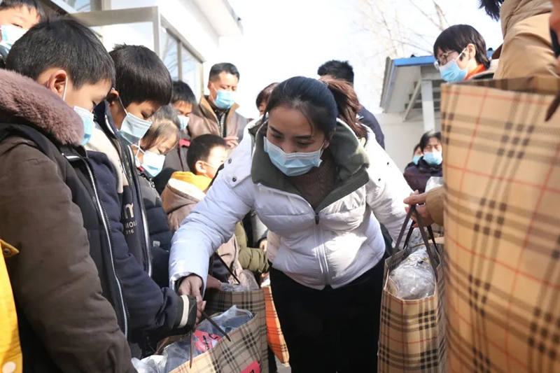 1月9日上午,滕州水发集团工会女工委在市妇联组织下,开展了“把爱带回家”2021寒假儿童关爱服务活动,为东沙河街道王村20余名困难儿童带去了棉衣,送去了新年的祝福。