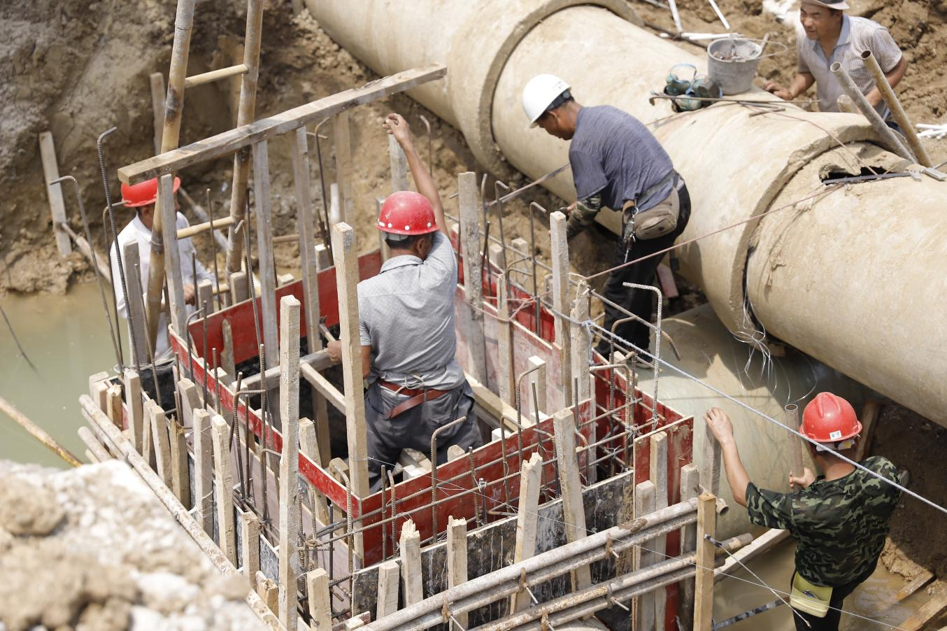 该工程需升级改造污水管线约6公里,工期短、战线长、任务重。工程自7月中旬开工以来,广大施工人员顶烈日、冒酷暑,克服雨季施工难度大、地质条件复杂等不利因素,全面铺开一场与时间赛跑、打赢管网改造工程攻坚战,日夜流汗作业,24小时轮班施工,赶工期,保进度,勇挑重担、齐抓共进,投入大型机械设备130余台,全力加快项目建设。