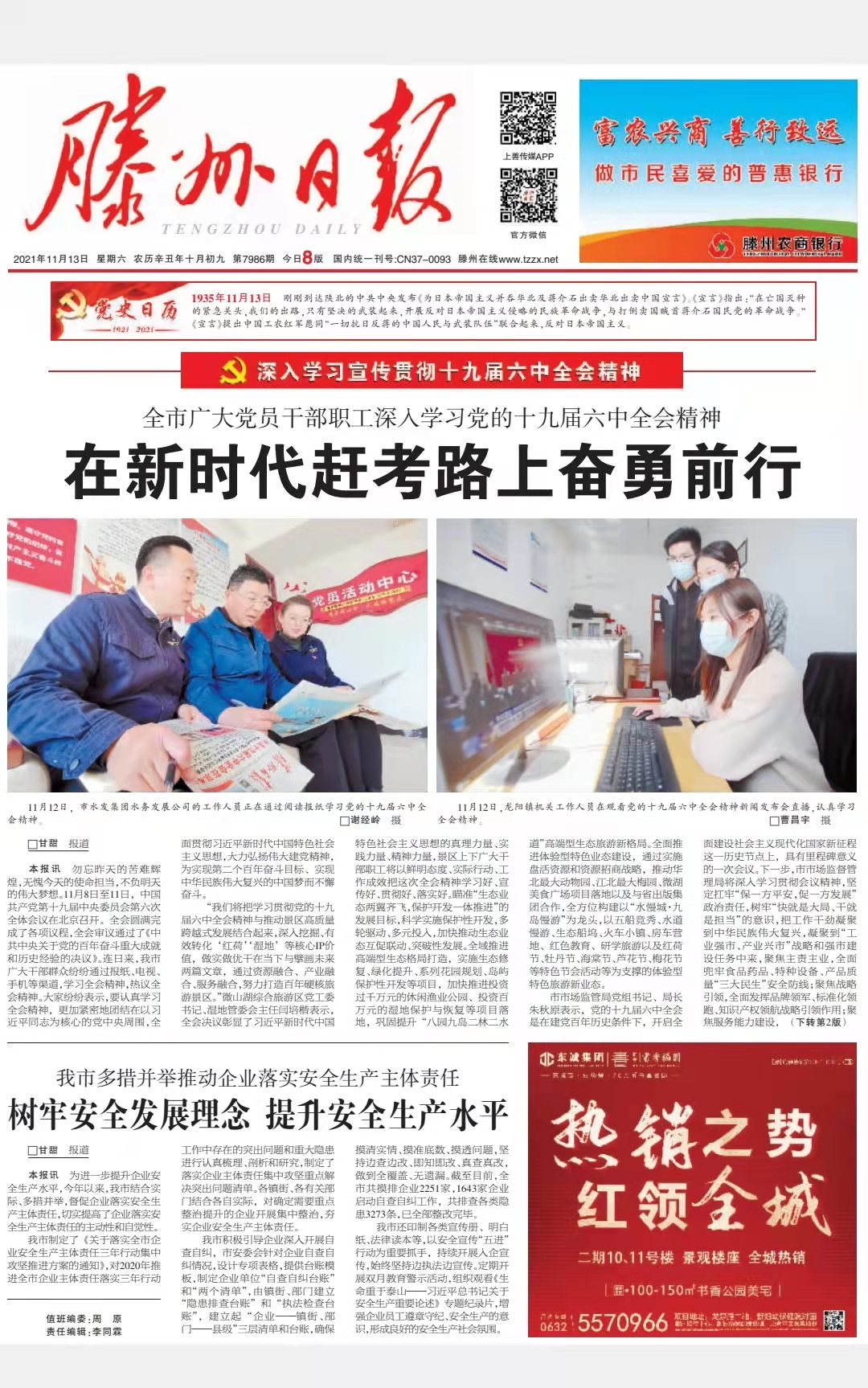 【集团动态】《深入学习贯彻党的十九届六中全会精神》成就鼓舞人心 蓝图催人奋进 党的十九届六中全会公报在我市引起热烈反响 日期:2021-11-13 点击: 最新推荐 【集团动态】喜报!“善水进万家”志愿服务项目荣获2025年度枣庄市志愿服务项目大赛铜奖 2025-09-10 人气:11 【集团动态】精准巡检除隐患 多措并举保畅通 2025-09-09 人气:16 【集团动态】滕州市水务发展集团中润供水有限公司营销管理系统建设项目正式启动 2025-09-05 人气:37 【集团动态】开展水站提井检查 守护深层供水安全 2025-09-03 人气:20 【集团动态】高效优质建工程 锦旗致谢显担当 2025-08-29 人气:38 【集团动态】滕州市精密水表制造基地建设项目签约仪式圆满举行 2025-08-28 人气:46 【集团动态】管道机器人全面“上岗” 精准检测城市地下管网 2025-08-24 人气:29 【集团动态】滕州市水务发展集团中润供水有限公司开展离休干部大走访活动 2025-08-24 人气:30 【集团动态】滕州市水务发展集团中润供水有限公司开展文秘宣传岗职员竞选活动 2025-08-24 人气:27 【集团动态】锦旗映初心 实干暖民心 2025-08-22 人气:56
