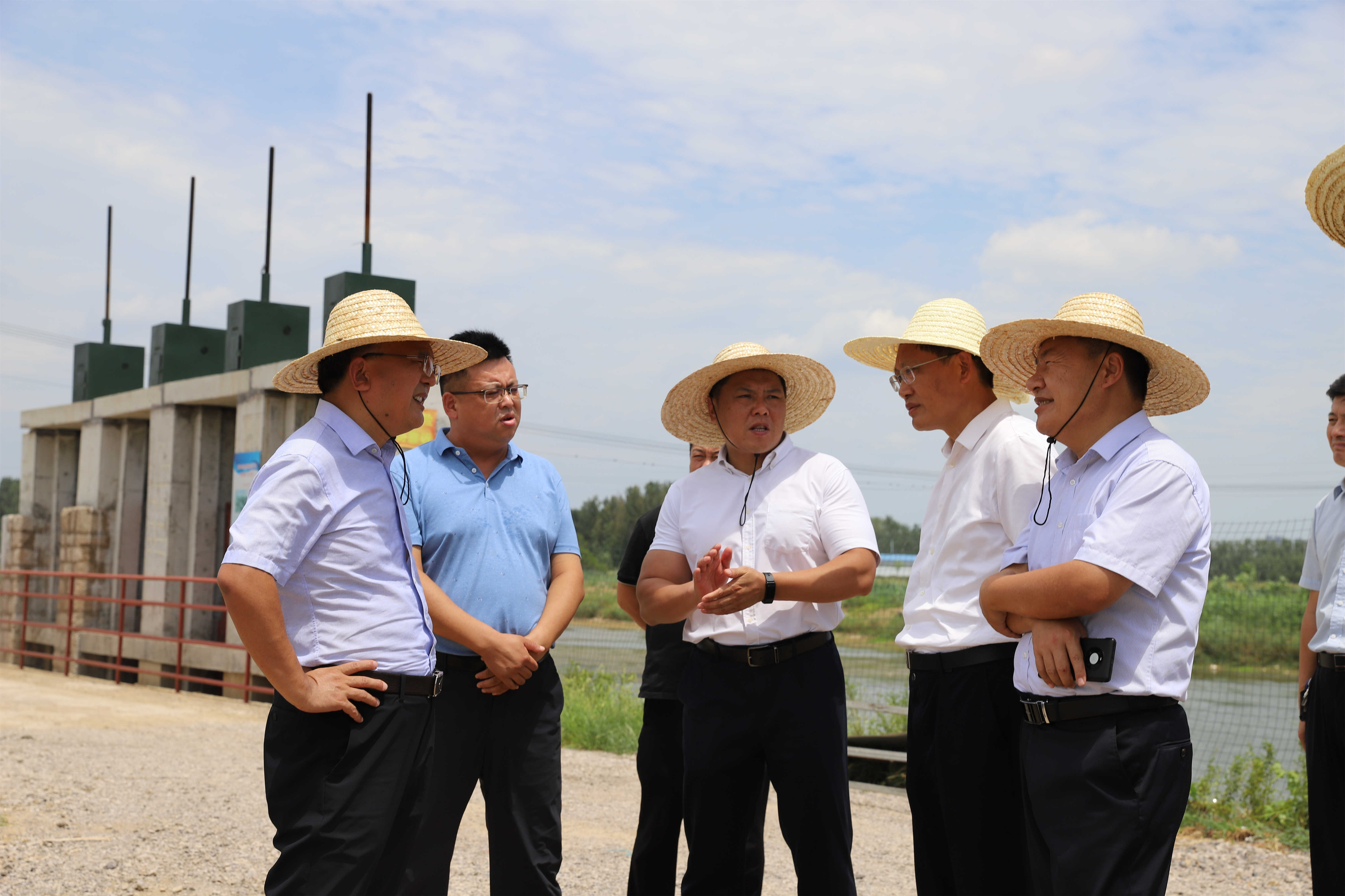 8月7日上午,滕州市委常委、市政府副市长张传纲到“山水林田大会战”精品示范项目王林水库建设现场视察调研,姜屯镇党委副书记、镇长冯英华、集团党委书记、董事长李亚峰、党委委员、副总经理马运科陪同。