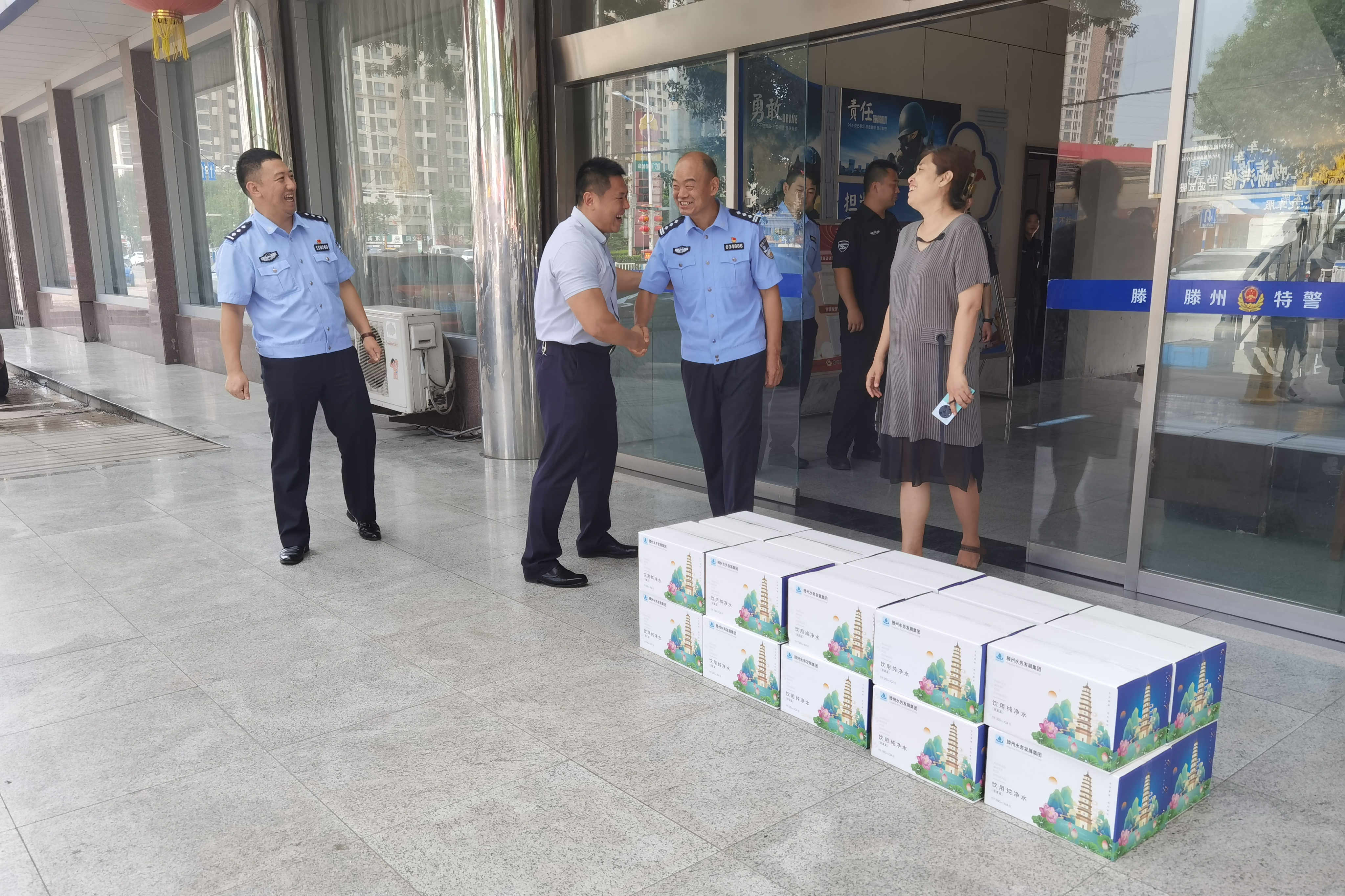 李亚峰一行将一箱箱集团自主生产且具有鲜明滕州特色的瓶装水送到各驻地,给奋战在一线的工作人员带来了清凉的夏日问候,并向不畏酷暑、坚守岗位的工作人员送上了真切的关爱。