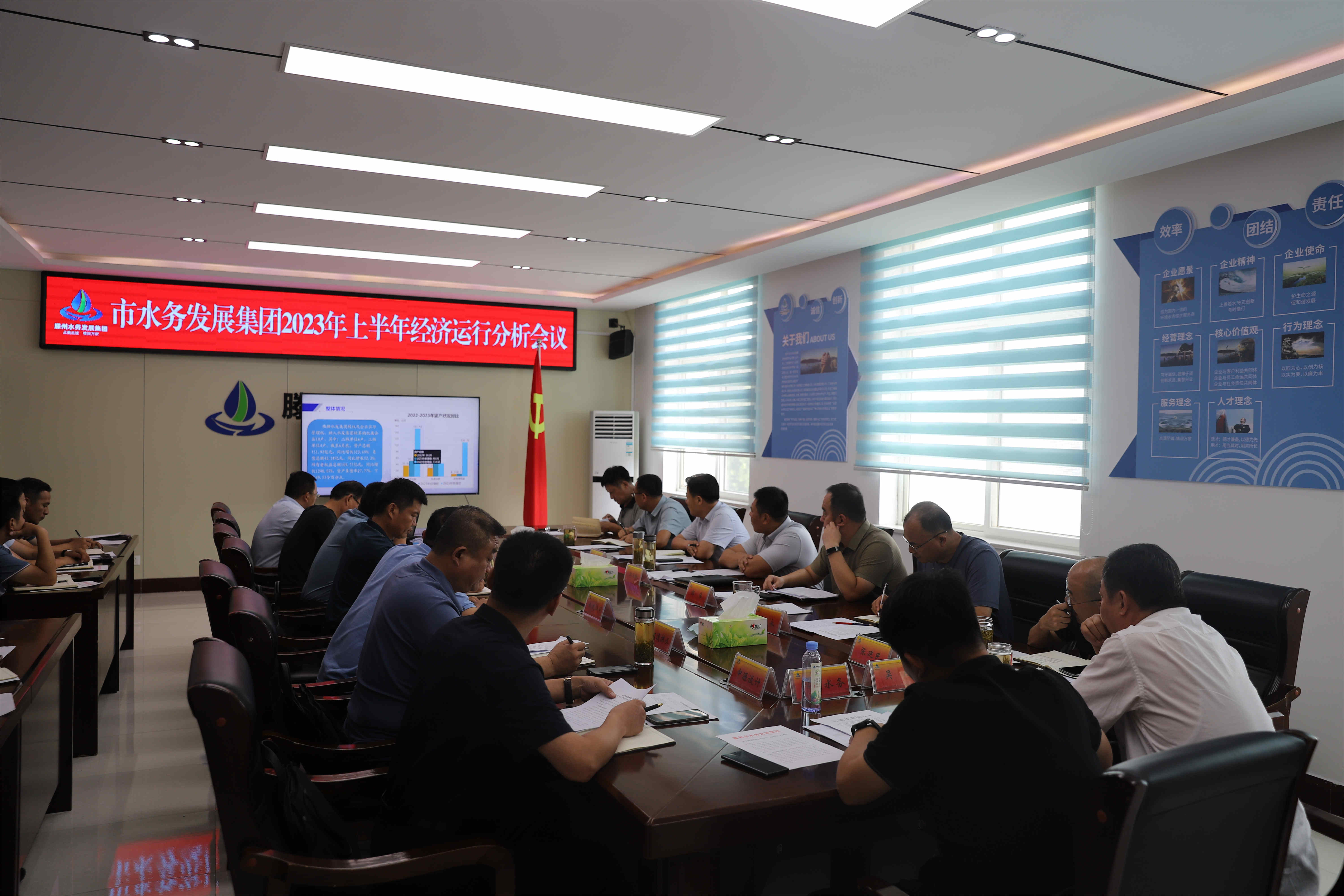 为贯彻落实市属国有企业2023年上半年经济运行分析会议精神,深入总结集团上半年经济运行工作,部署下半年重点工作。7月28日,市水务发展集团2023年上半年经济运行分析会议在集团三楼会议室召开,会议由集团党委副书记、总经理郭伟同志主持。集团党委书记、董事长李亚峰同志出席会议并讲话。集团领导班子成员,各部室及子公司负责人参加会议。
