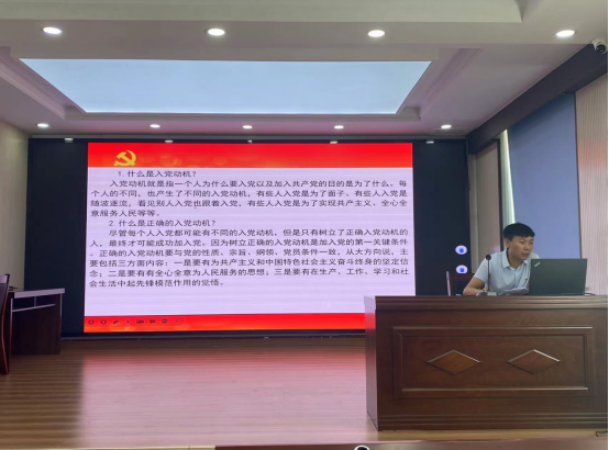 培训仪式上,市国资局四级主任科员,企业党建室、纪检监察室主任孔文超同志就《发展党员基本流程及常见的问题》进行授课,集团组织人事部副部长刘国海同志详细论述了《入党积极分子应知应会》,组织集中观看了集团《“不忘初心当先锋·奋勇争先做标兵”2022年度颁奖典礼视频》,随后进行了闭卷考试。