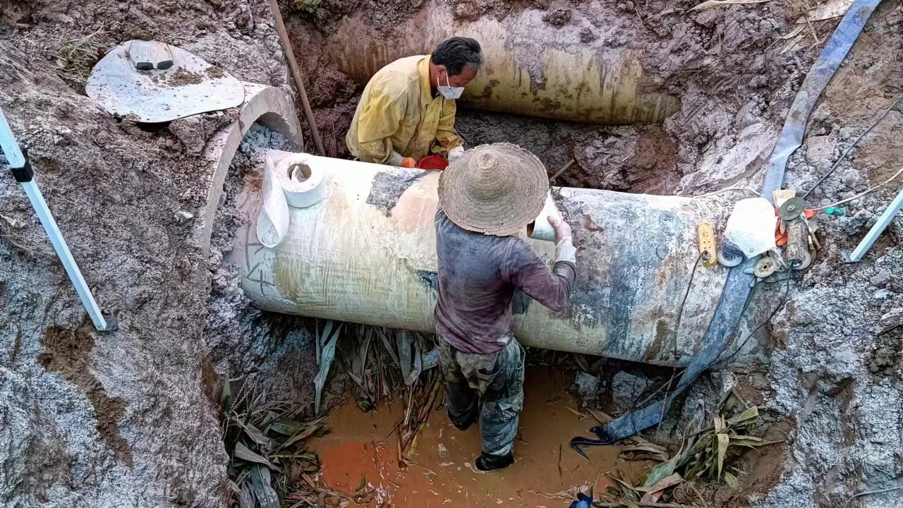 次日早5时,抢修人员按计划投入到管道紧急修复。此处管道属于供水主管道,周边环境复杂,维修工作不仅要争分夺秒,更容不得任何马虎大意。抢修人员不畏艰难,对漏损处一点点切割、打磨、找补、固定……维修工作从早上五点一直持续到下午三点,工作人员全力以赴、一刻也不敢停歇,只为争分夺秒完成抢修。