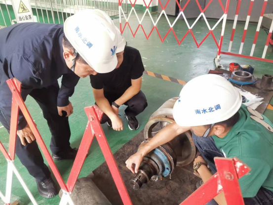 在一处供水泵房现场,工人正在对水泵叶轮、轴等设备进行检修,规范进行设备的日常维护,做到故障隐患早发现、早判断、早处理。