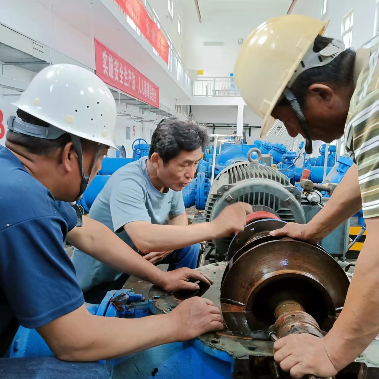加强设备巡检,保障生产设备稳定运行。对各厂区泵站、电器机械设备开展了全面检查维护,重点对室外加压泵、配电箱、变压器及供电线路、通讯设施等进行防风、防雨、防雷击隐患排查,对各厂区建筑物进行安全检查及屋面防水加固。同时,进一步做好生产设备备品备件的清查、储备、维护保养等工作,做到情况清、底数明。