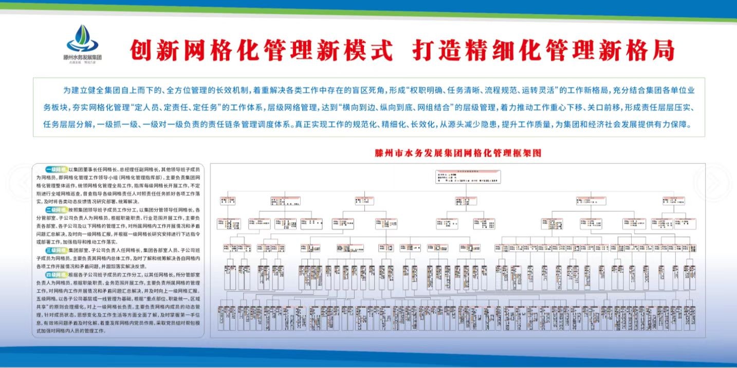 近年来,滕州市水务发展集团党委坚持以党建为统领,充分发挥党把方向管大局保落实的政治功能,精心打造“红帆领航、兴水为善”党建品牌,全面推行“零距离、六提升、三融合、两保障”的"0632"党建工作法,积极探索党建与业务工作同频共振新思路,形成了“党建引领、网格管理、旗帜定向、聚力前行”的特色党建工作格局,以高质量党建护航集团改革高质量发展。