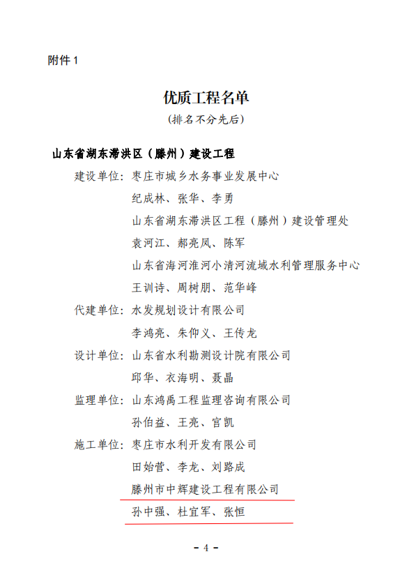近日,市水务发展集团中辉建设工程有限公司承建的滕州市北沙河上游段治理和郭河上游段治理两项工程荣获2024年水利行业质量管理小组活动二等成果,山东省湖东滞洪区(滕州)建设工程荣获2023-2024年度全省重点水利工程建设“争进度、赛质量,比担当、创精品”创新创优劳动竞赛优质工程奖。