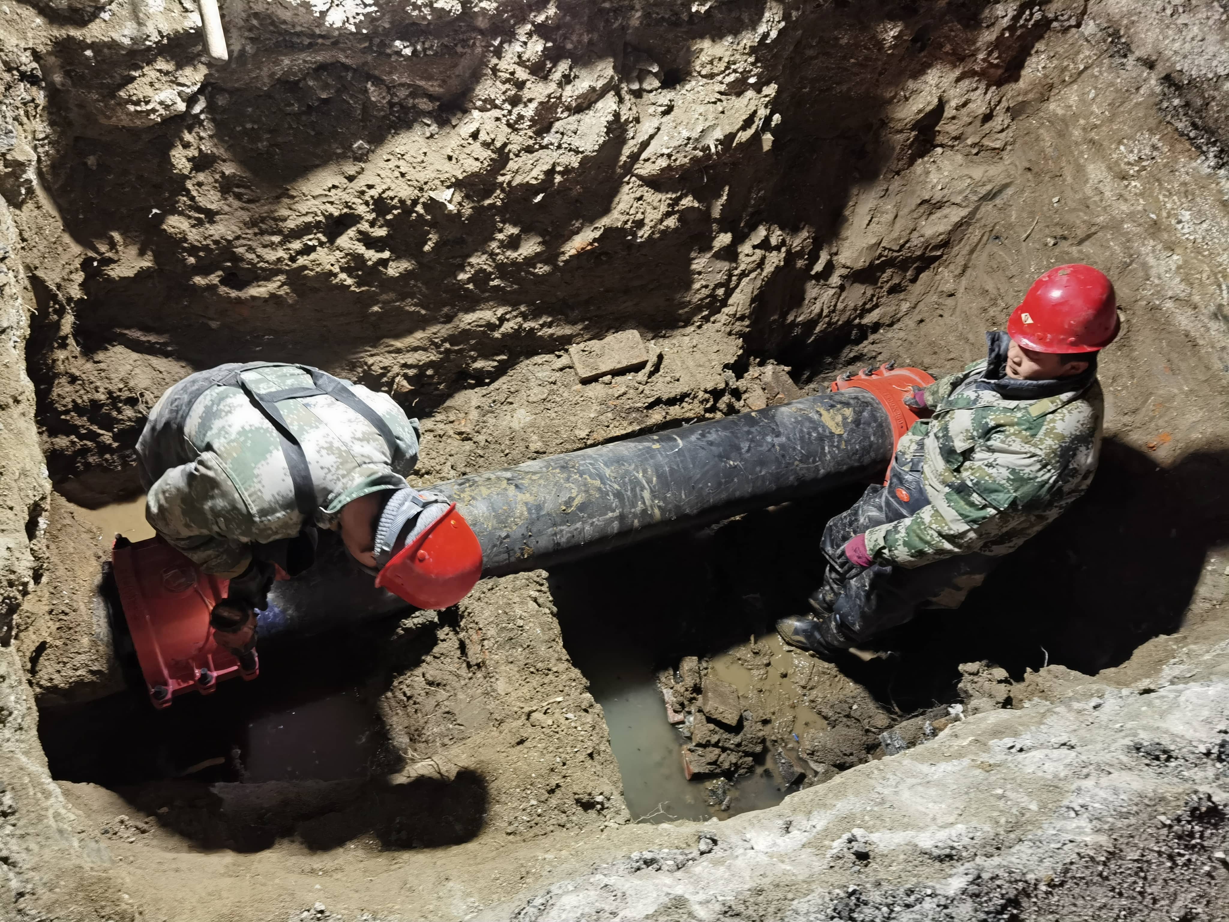 由于停水区域路面无明显积水,第一时间无法确定漏水具体位置,中润公司通过依次关闭各支线阀门,分区停水观察水压变化的方式,最终确定平行路西侧排污管道附近的DN300供水管道出现破损,导致停水。在确定漏点后,维修人员凭借丰富经验和专业技能,迅速制定抢修方案,经过6个小时的连续奋战,于19时57分成功修复漏水点,恢复供水。