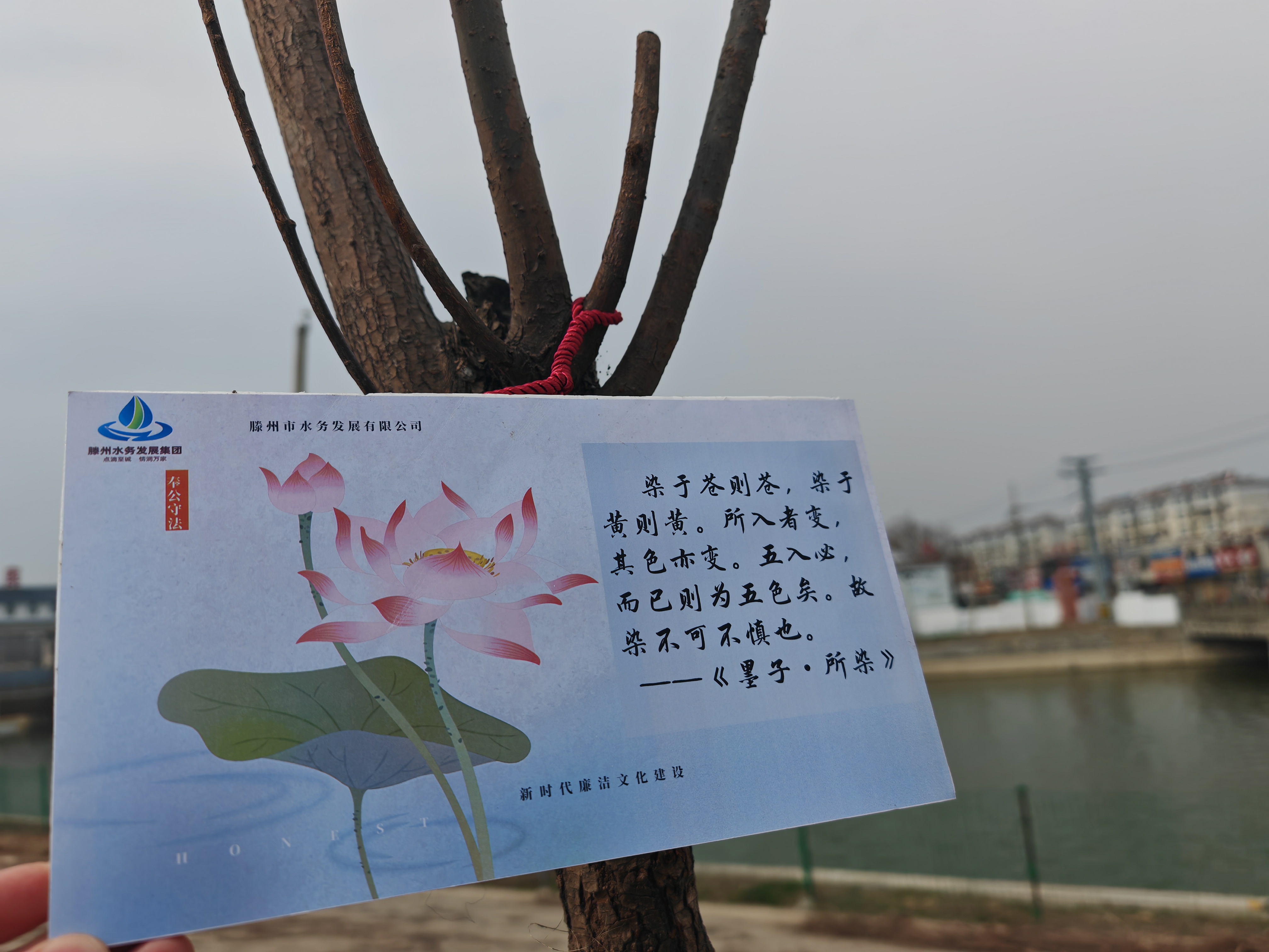 植树活动现场,阳光温柔洒落,映衬着职工们热情洋溢的脸庞,大家分工明确、干劲十足、配合默契,有人挥锹挖坑,有人扶苗培土,有人提水浇灌…各个环节一丝不苟,整个过程井然有序,处处都是忙碌的身影。一番热火朝天的劳动后,30棵柳树深深扎根,迎风而立,让南水北调调蓄水库充满盎然生机和蓬勃朝气。随后,大家将一块块印有墨子清廉思想名句的警示牌挂在树上,警醒自己要严以修身律己,恪守清正廉洁,共同营造风清气正、积极向上的廉洁文化氛围。