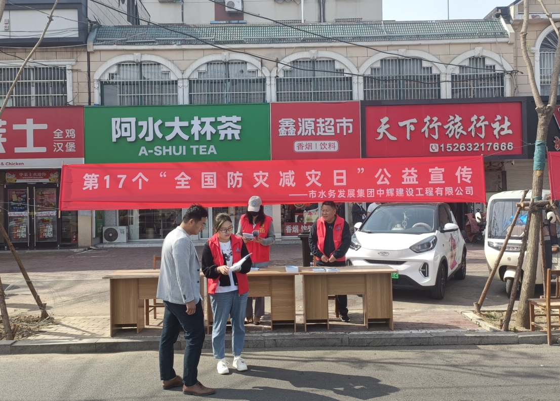 5月12日是第17个全国防灾减灾日,为进一步提升干部职工防灾减灾意识,普及推广防灾避险知识,市水务发展集团中辉建设工程有限公司开展防灾减灾宣传活动。