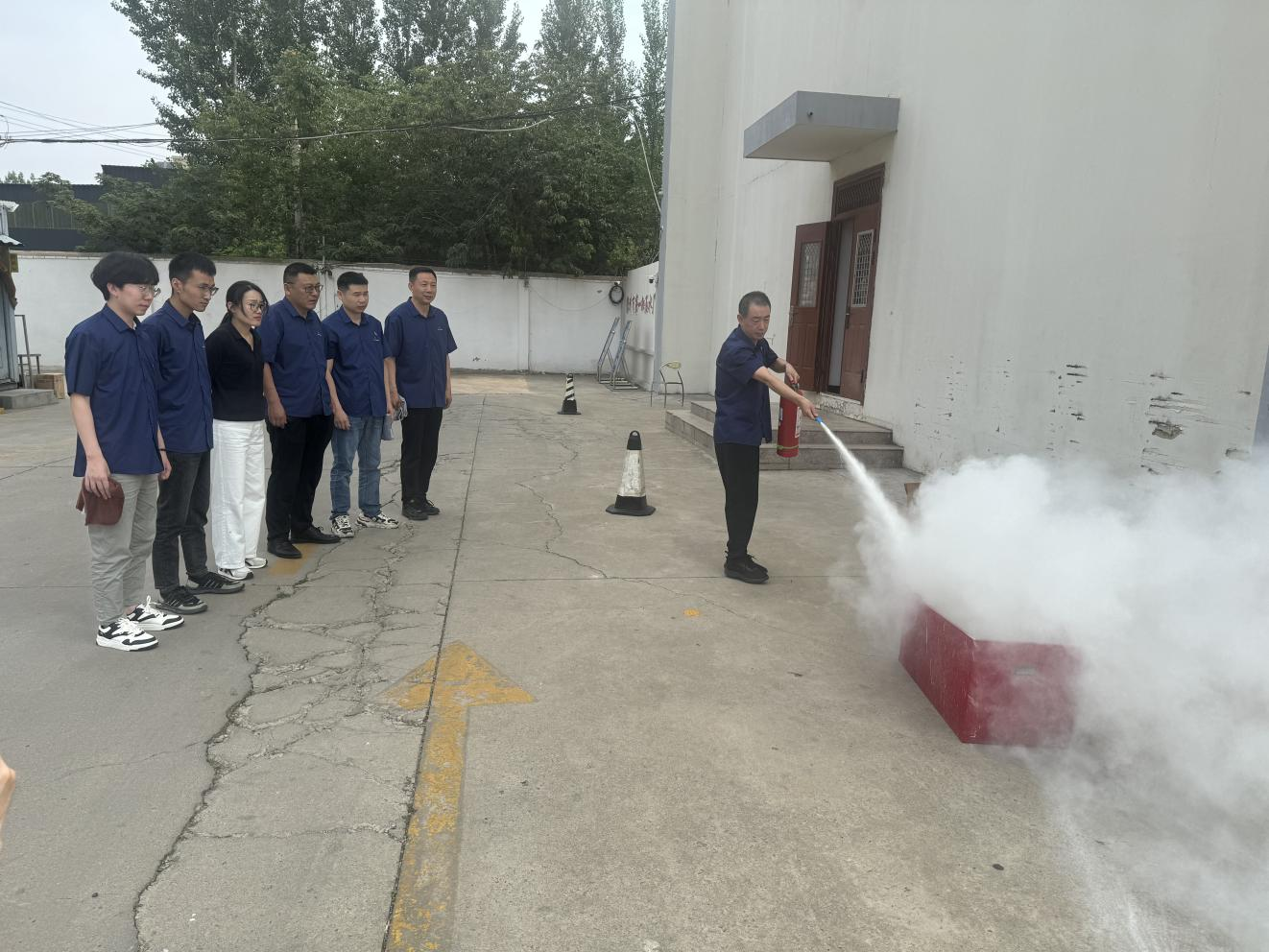 演练中,模拟火灾警报骤响,各部门职工迅速反应,按照既定疏散路线,用湿毛巾掩口鼻、低姿态前行,有序向安全区域撤离。整个过程紧张有序,全员保持冷静,有效规避了拥挤、踩踏风险。实操环节,现场通过“理论讲解+示范演示”相结合的方式,详细展示灭火器正确使用方法,让参训人员直观掌握操作要领,强化实战技能。