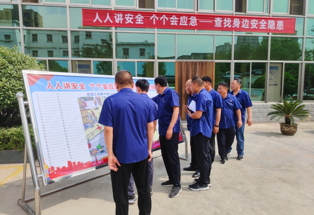 活动现场,公司领导班子带头,全体干部职工依次签署个人安全承诺书,并在“安全生产始于心规范操作践于行”集体承诺横幅上郑重署名,将安全责任“签”入心中、扛在肩上。在“隐患我来找”竞赛中,现场悬挂包含100处工程施工典型隐患的场景图,职工们聚焦临边防护缺失、用电不规范、设备操作不当等细节,沉浸式“找茬”辨识风险。