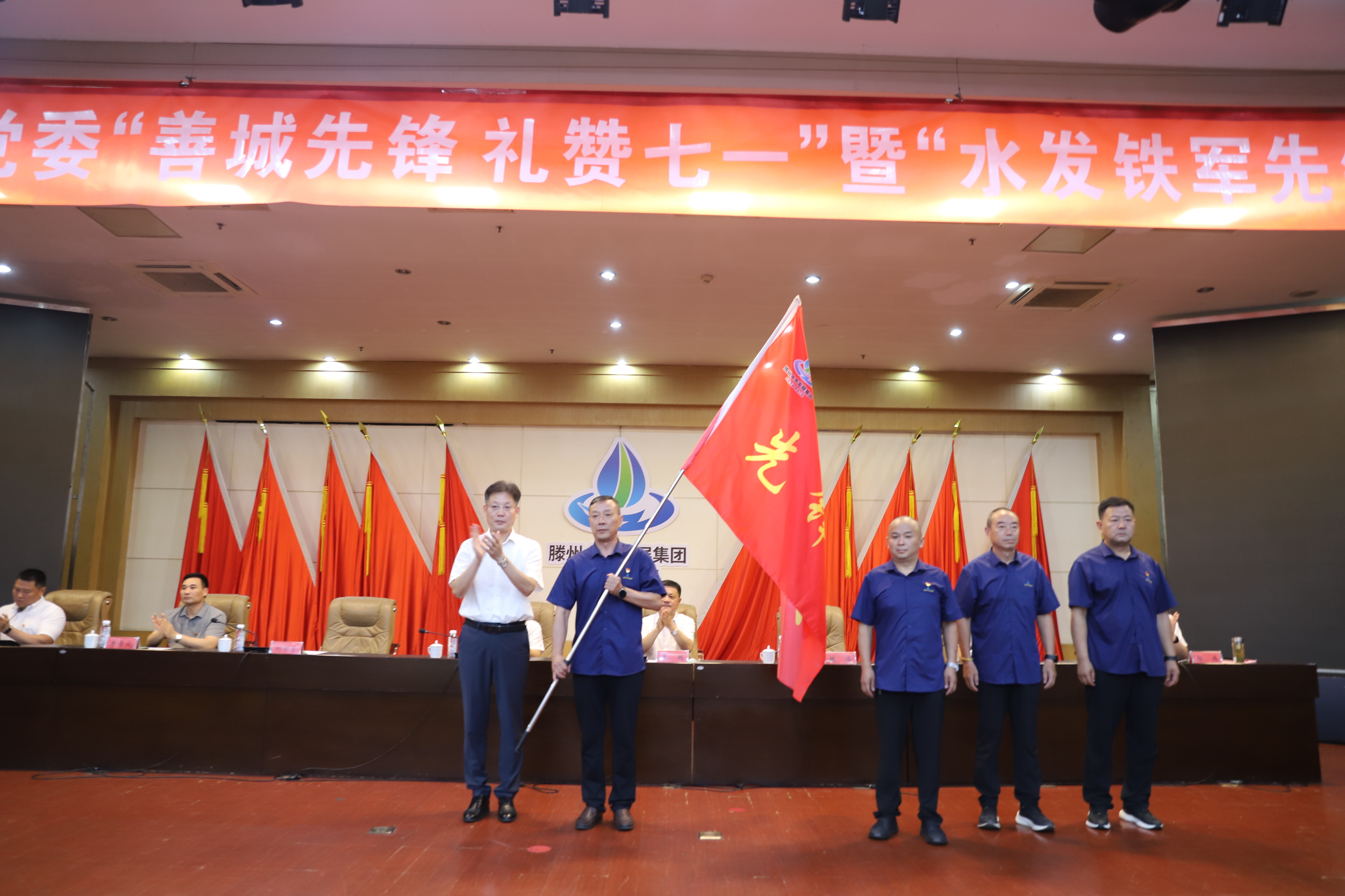 7月8日,为庆祝中国共产党成立104周年,大力弘扬“传承、奉献、坚守、担当”的水发精神,激励集团全体党员干部职工不忘初心、奋勇争先,进一步凝聚干事创业的强大合力,滕州市水务发展集团举行“善城先锋 礼赞七一”暨“水发铁军先锋队”授旗仪式。