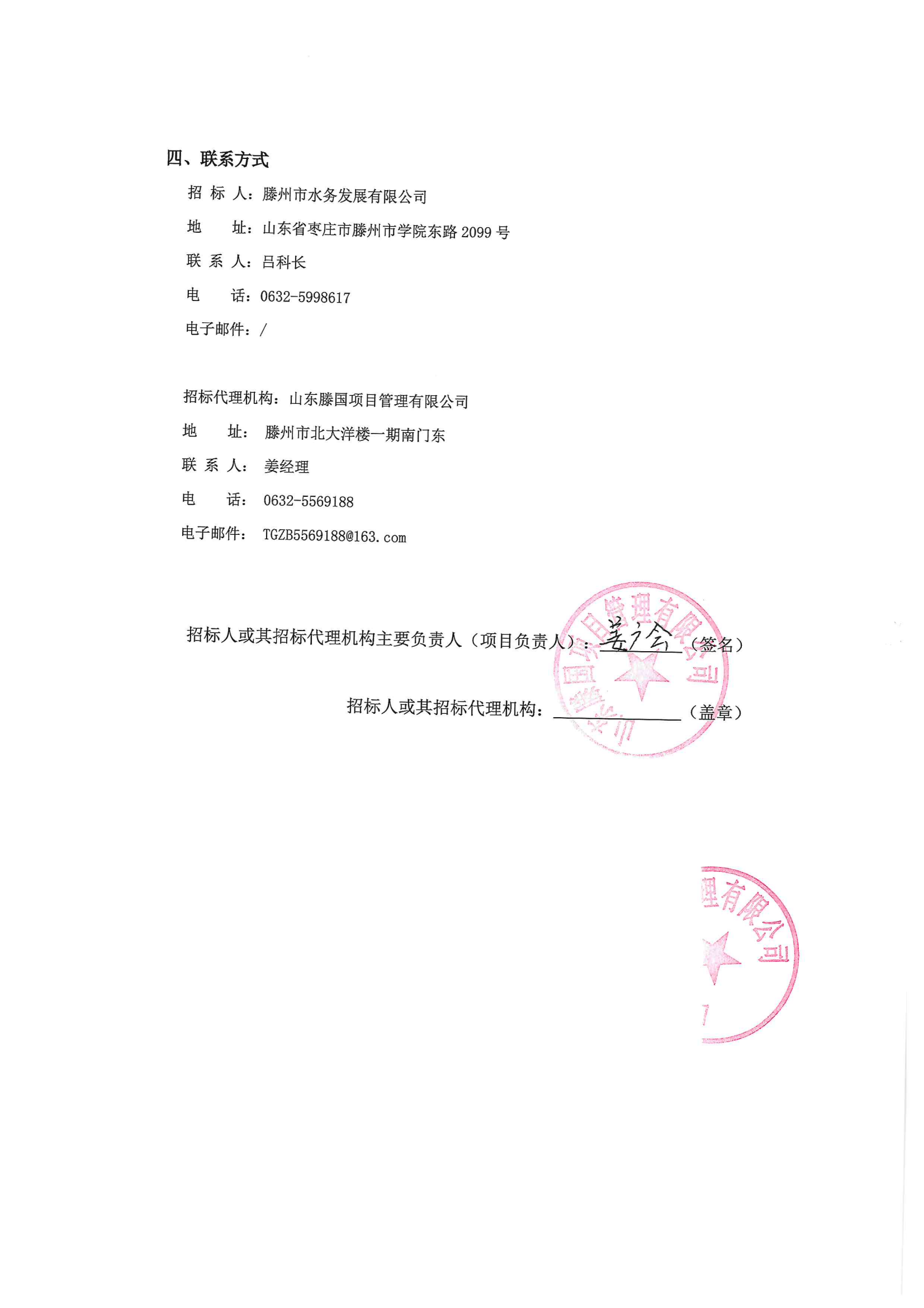【水发公司】南水北调东线一期工程枣庄市续建配套工程(滕州供水单元)调蓄工程地块控制性详细规划技术咨询服务 日期:2025-07-23 点击: 最新推荐 【中润公司】滕州市中润供水有限公司香舍里花园四期闸阀及双偏心法兰蝶阀、球墨铸铁管件、电磁水表采购项目三标段(二次)废标公告 2025-09-11 人气:7 【中润公司】滕州市城乡供水水质提升项目管线下穿枣木高速(S83)、321省道及东木路(10K+472、18K+614)涉路工程咨询服务采购项目谈判公告 2025-09-08 人气:8 【汇通公司】水泥钢边井盖、雨水箅采购项目(二次)竞争性磋商公告 2025-09-08 人气:4 【汇通公司】水泥钢边井盖、雨水箅采购项目流标公告 2025-09-08 人气:2 【水发公司】滕州市水务发展有限公司安全技术咨询服务项目竞争性磋商公告 2025-09-08 人气:10 【国润公司】滕州市南四湖湖水东调工程--采购标招标公告 2025-09-08 人气:5 【国润公司】滕州市南四湖湖水东调工程--监理标,检测标,施工标,其他标招标公告 2025-09-08 人气:5 【中润公司】滕州市城乡供水一体化安全巩固提升工程(一期)监理标、质量检测标、设计施工总承包(EPC)招标公告 2025-09-05 人气:11 【中润公司】滕州市中润供水有限公司第一净水厂厂区标准化提升改造物料制作安装工程采购项目询价公告 2025-09-05 人气:5 【中润公司】滕州市中润供水有限公司西办公楼配电改造工程采购项目询价公告 2025-09-05 人气:3